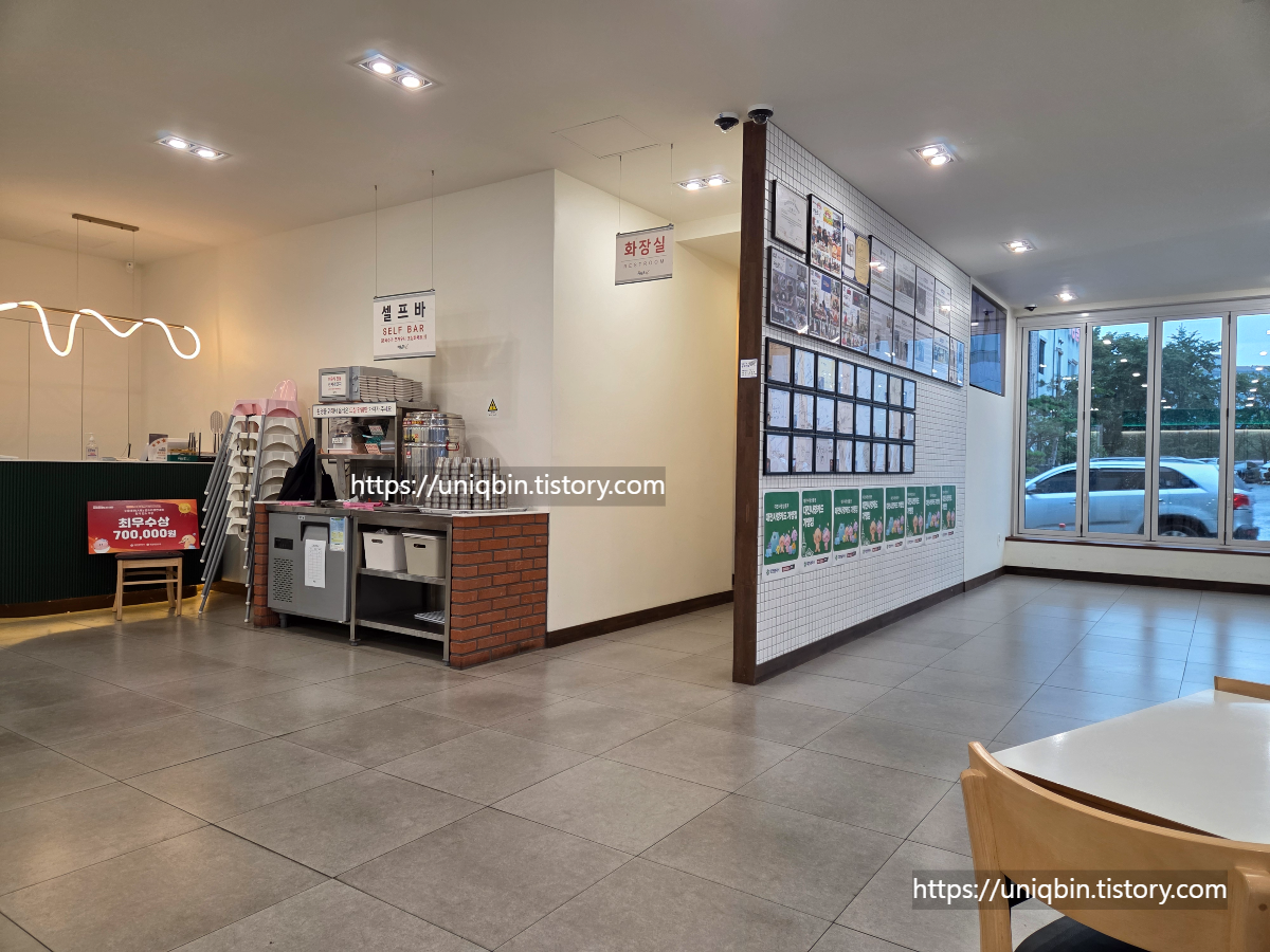 넓고 트인 내부라 편하게 식사할 수 있는데 바로 앞에 화장실이 있는것 좋았으나~
