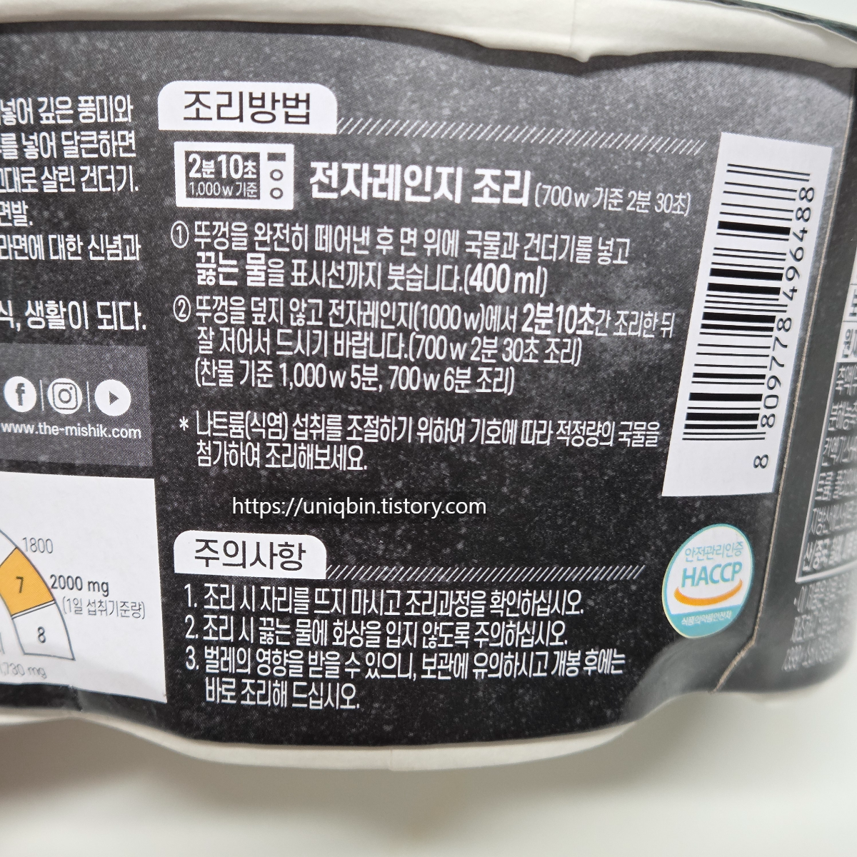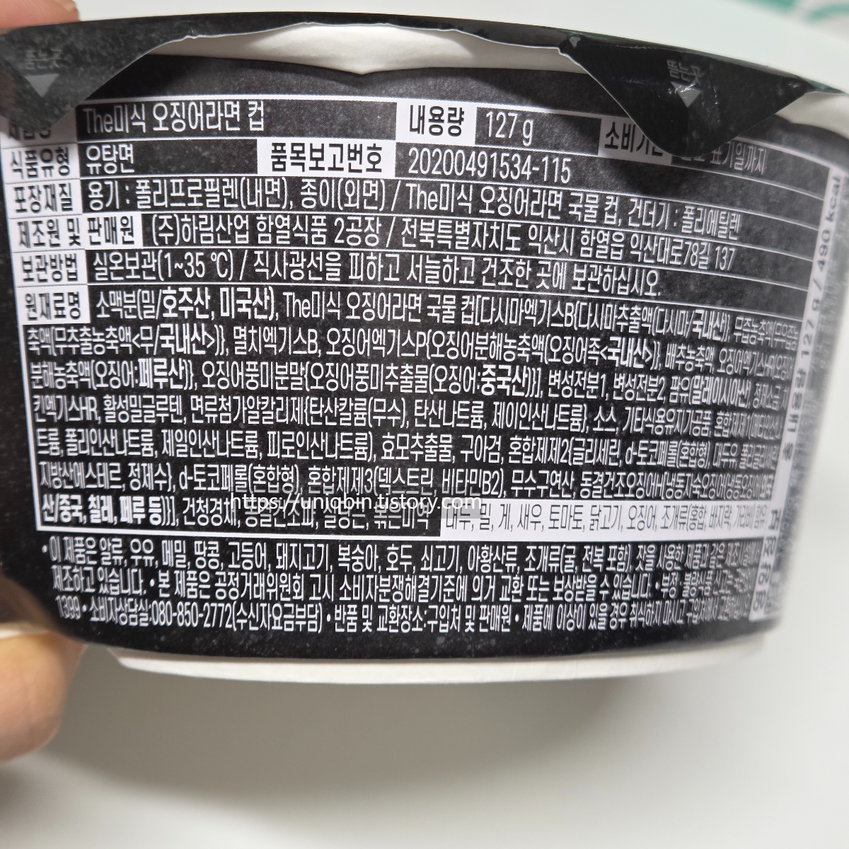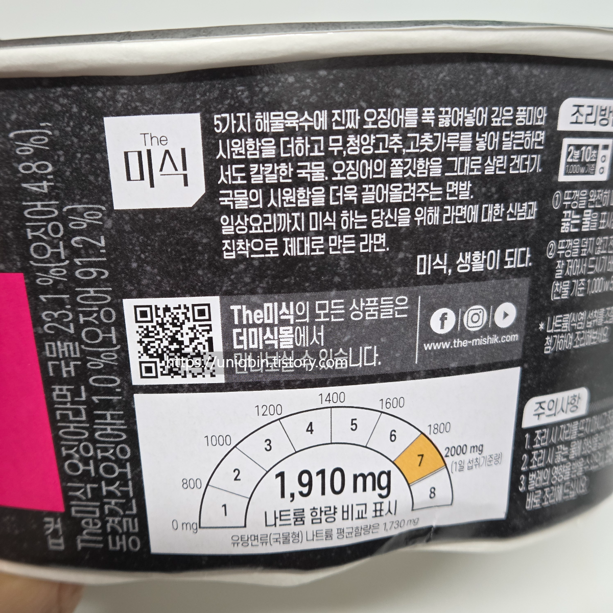 더미식 오징어라면 컵 영양정보 참고해주시구요~