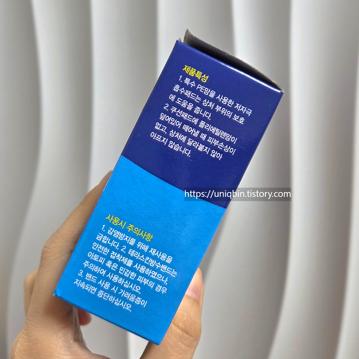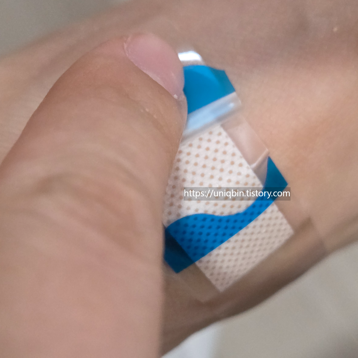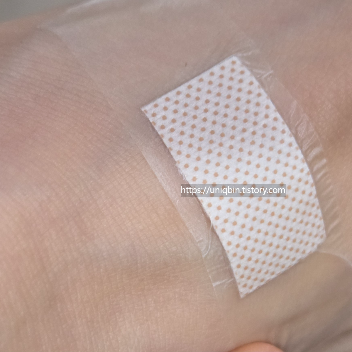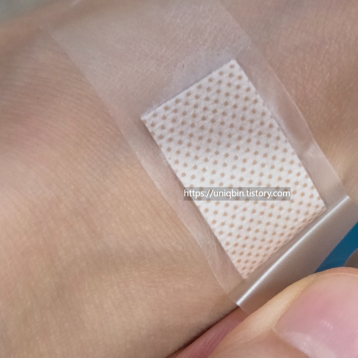 뒷쪽의 흰색 보호지를 벗겨내고 상처에 붙여주고 난 뒤,