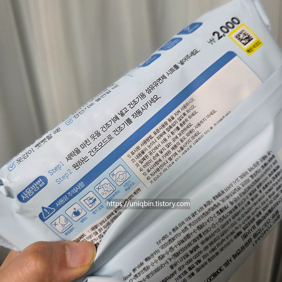 저는 건조기 돌릴때 섬유유연제 시트를 안쓰는데