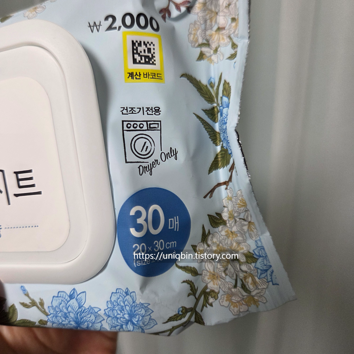품번 1040441 건조기 전용 섬유유연제 시트 30매