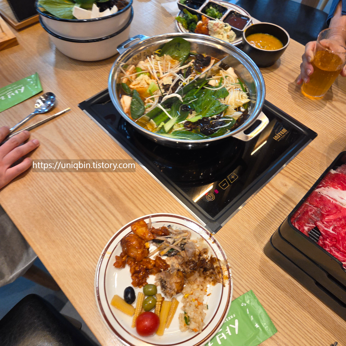 콩이랑 훠궈 육수리필은 직원분께 문의드리면 되고