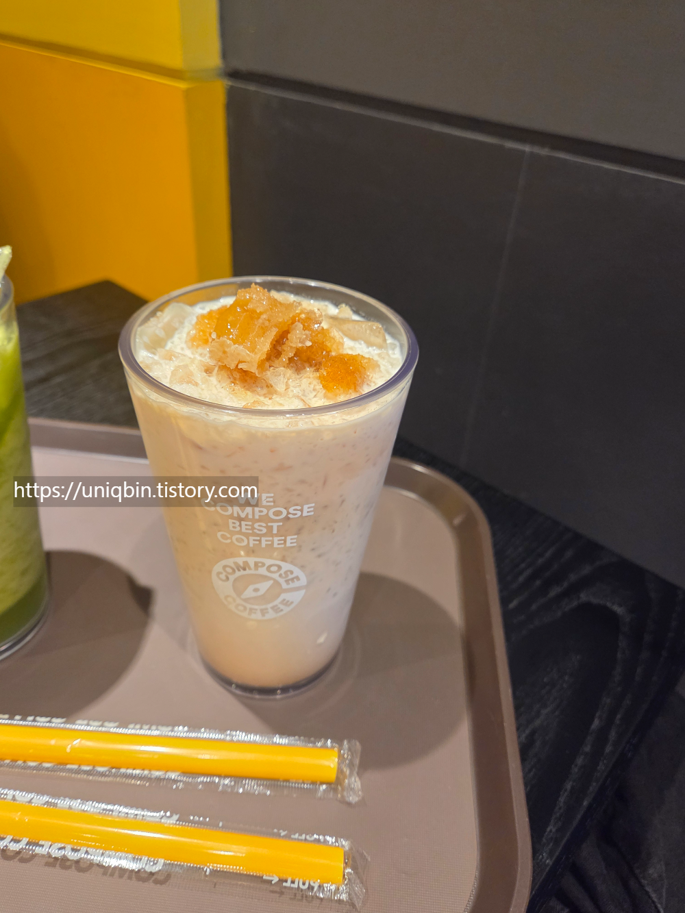 컴포즈에선 주로 아아 같은거 마시다가 이제 커피를 좀 줄여야 할것같아서 다른음료로 마시려는데