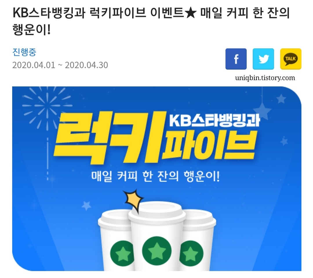 KB스타뱅킹이 저번엔 럭키세븐 이벤트를 하더니, 이벤엔 럭키 파이브 이벤트로 돌아왔네요 : )