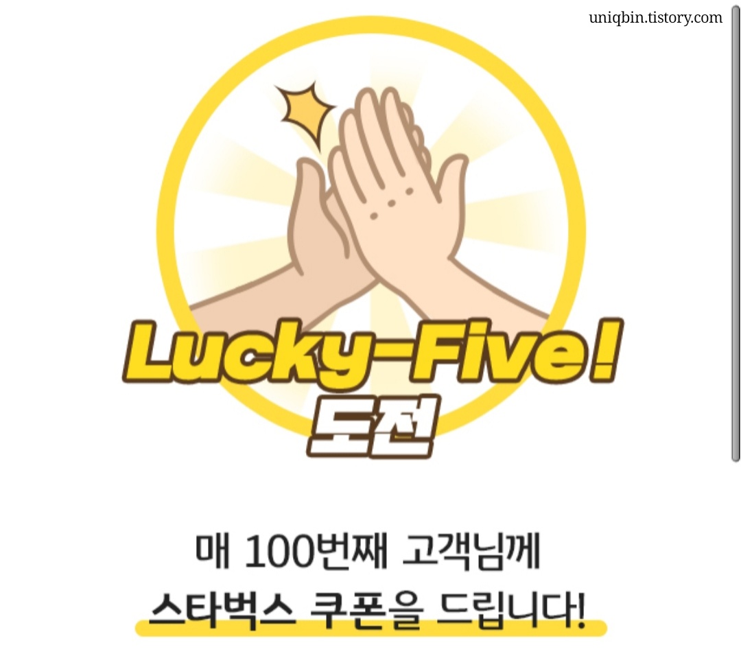 매 100번째 횟수에 당첨되면 스벅 커피쿠폰을 받을 수 있다고 해요. !!