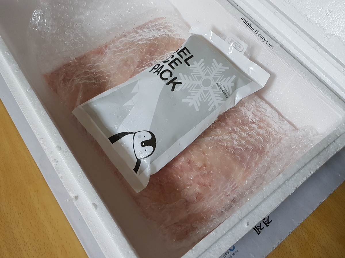 문앞에 둔지 약 한시간반 만에 집안으로 들고 들어와서 그런지는 몰라도 살짝 녹은상태였기에