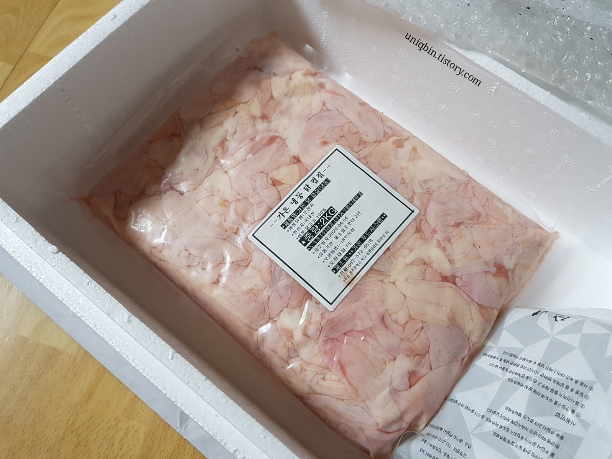 중량 2kg. 100% 닭껍질 입니다. 사진에선 굉장히 커보이지 않나요? 어마무시하게 클 줄 알았는데 의외로 적당했어요.
