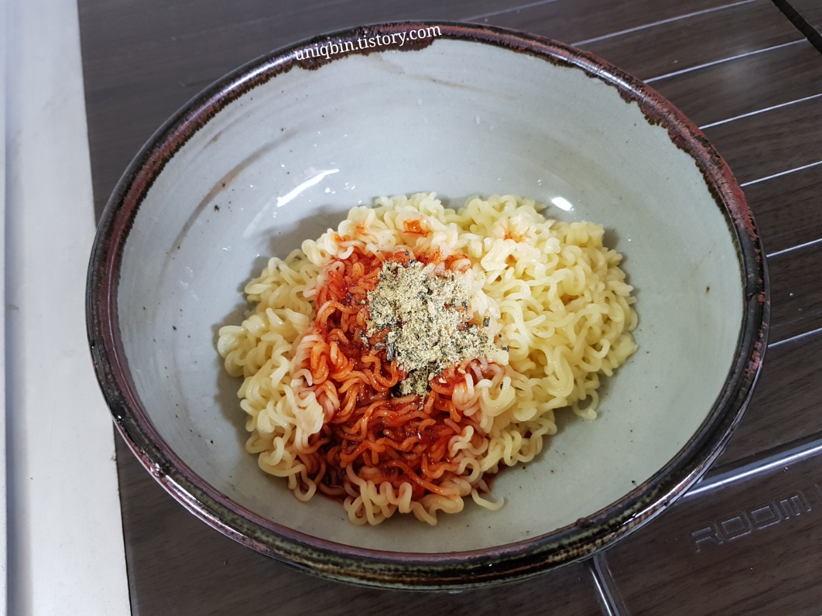 집에 아무것도 없을때 그냥 먹어도 좋을 비빔면이었어요. 근데 진짜 맵기때문에 매운거 잘드시는 분께 추천드려요~(그때그때 달라요. 두번째 먹었을땐 그냥 무난했어요)