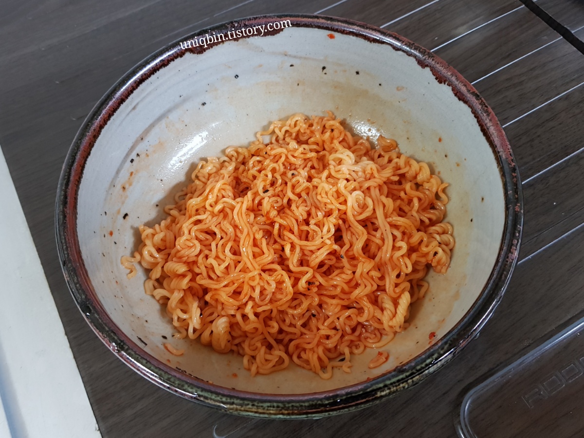 얼른 한입먹고싶어져서 바로한입 먹어보니 제가 매운거 잘먹는데도 어우..엄청 맵더라구요?