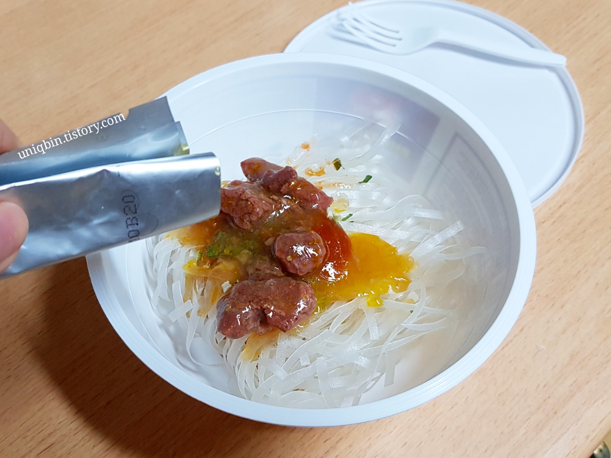 고수맛이 느껴진다거나 그렇진 않아서(?) 누구나 드시기 좋은 수준의 쌀국수로, 고기도 들어있어서 좋아요. 그치만 3분카레 고기보다는 낫다정도?