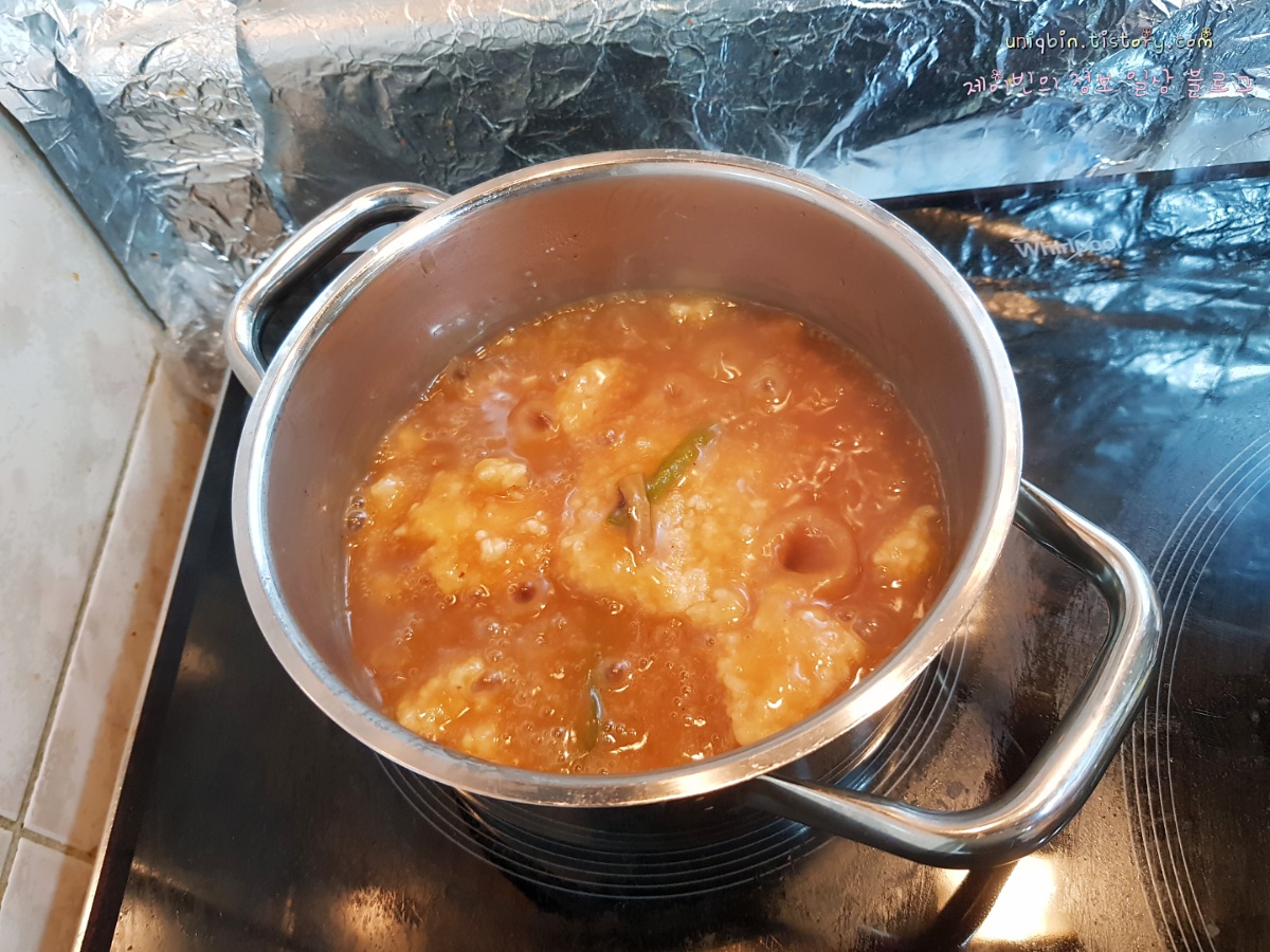 굳이 그릇을 더 내고싶지 않아서 냄비에 누룽지를 넣어주기로 해요.ㅎㅎㅎ