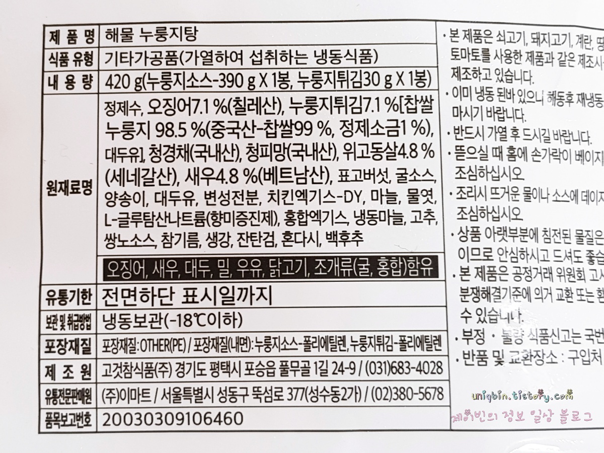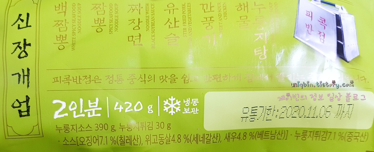 마침, 이마트 갔을때 피콕반점 해물누룽지탕이 보여서 사와봤어요.