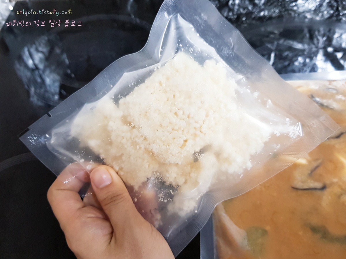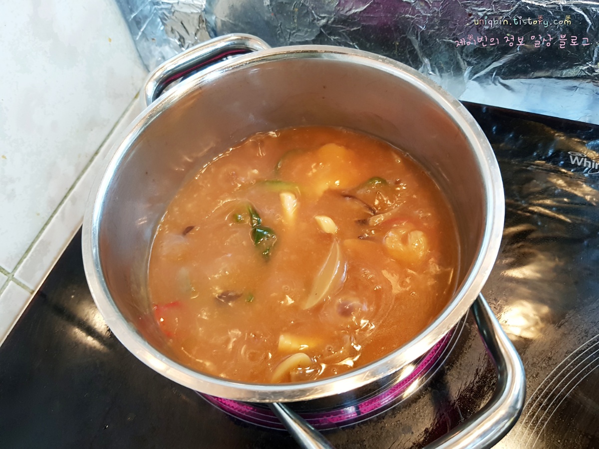 조리법을 보면 소스를 끓는물에 5분간 해동시키고