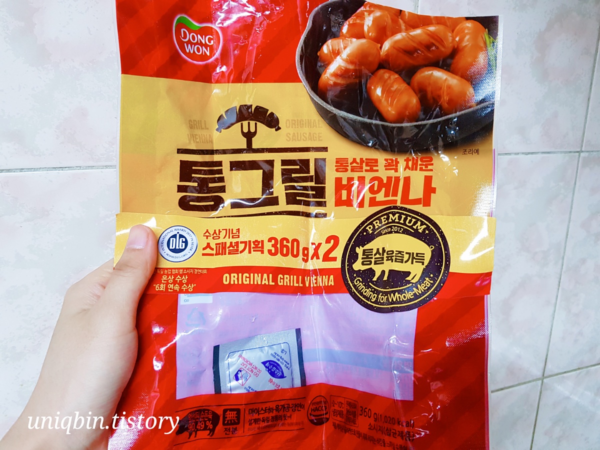 파시는분들도 저걸 드셔보니 진짜 맛있더라며 강추하시기에 속는셈 치고 사온 동원 통그릴 비엔나.