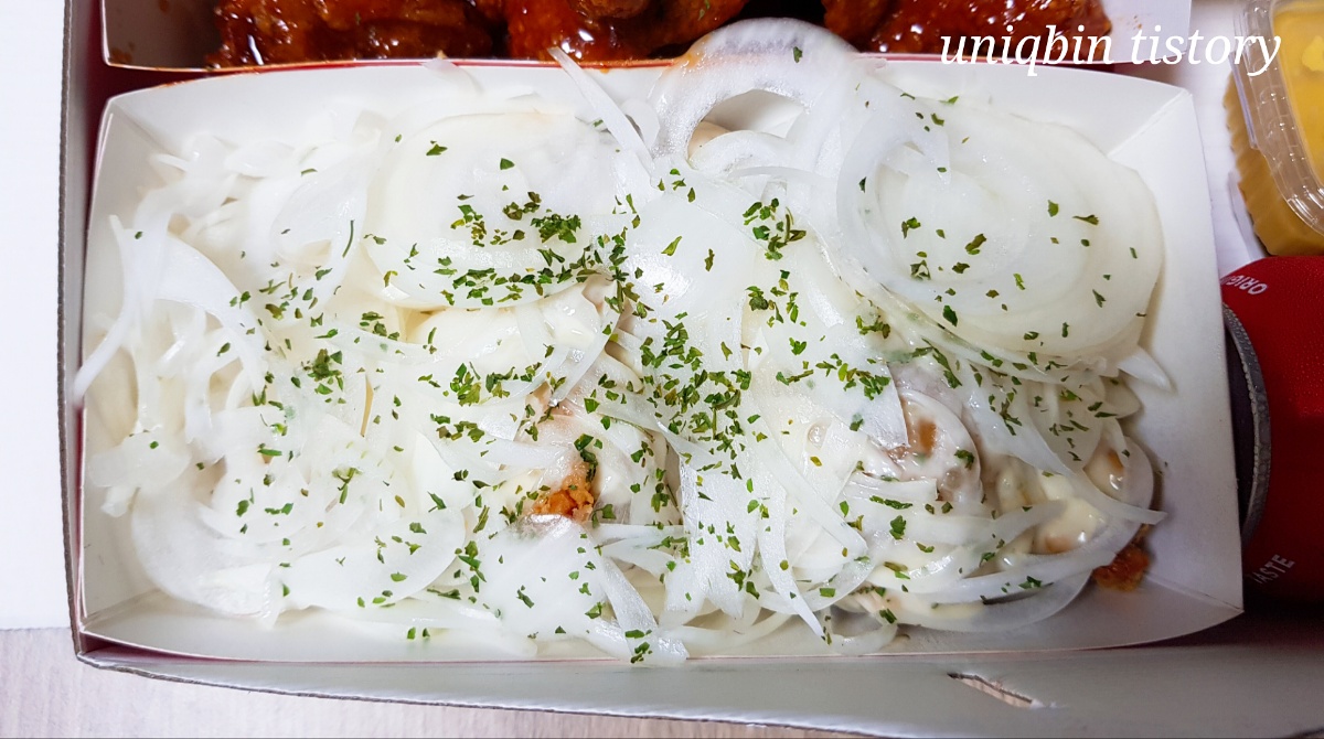 제가 시킨 세가지맛 중 어니언은 양파와 소스가득.