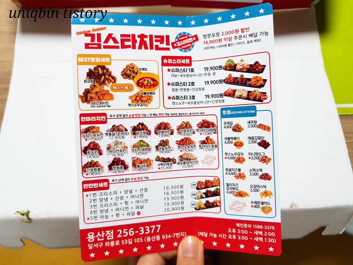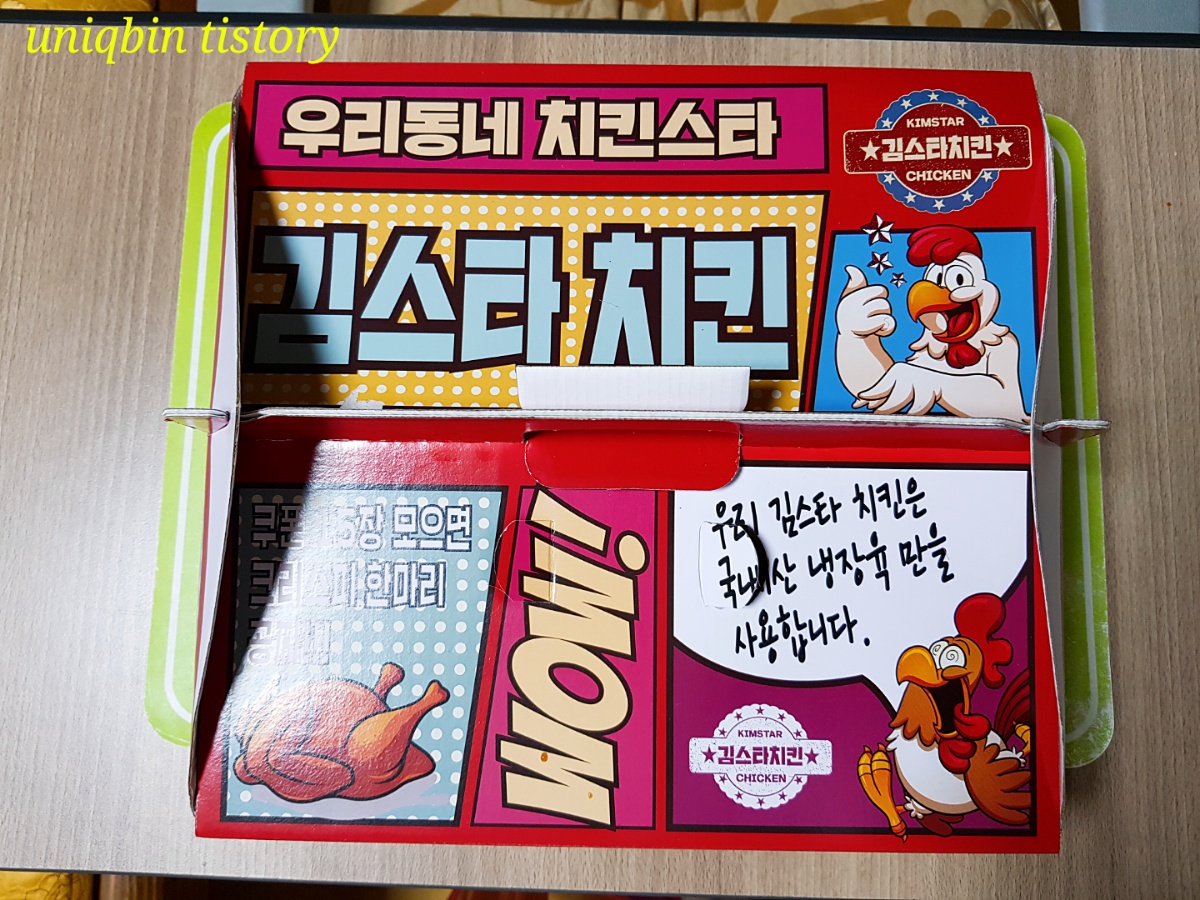 저는 튀김옷 많은 걸 좋아해서 티바두마리치킨이 좋은데(맛도 물론), 객관적으론 김스타치킨도 괜찮아서 한번쯤 추천드려봅니다ㅋ