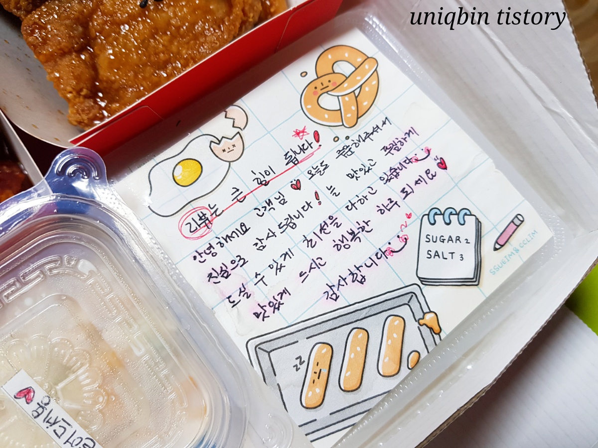 치킨무 위에 작힌 손글씨에 감동ㅠㅠ큽..
