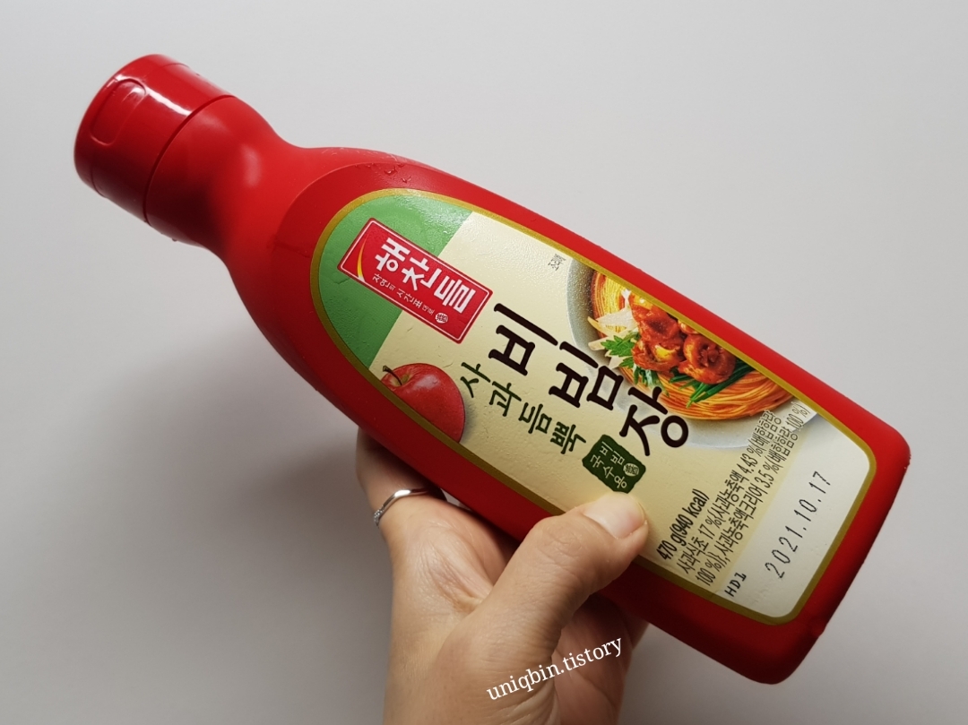 해찬들 사과듬뿍 비빔장을 마트에서 사다놓고 비빔국수 먹는날 넣어먹어봤어요. 근데 음..