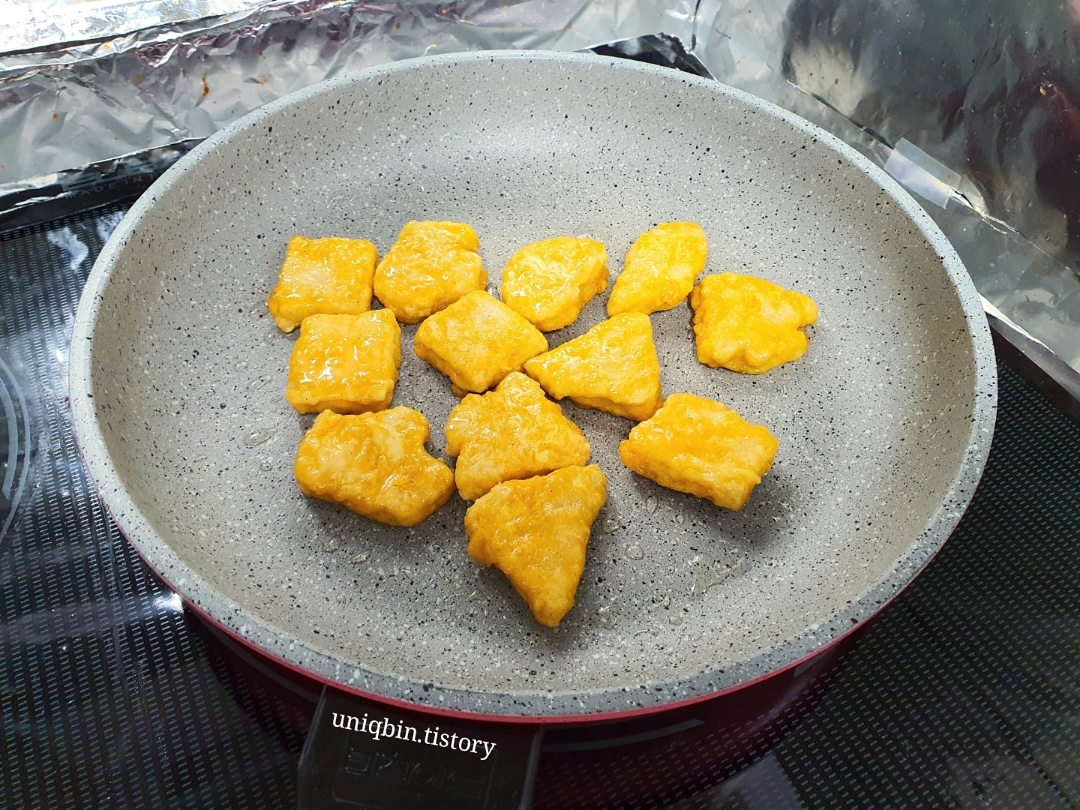 노릇하게 구워진 맛있는 치킨너겟. 원쁠원일때 더사둬야겠어요.