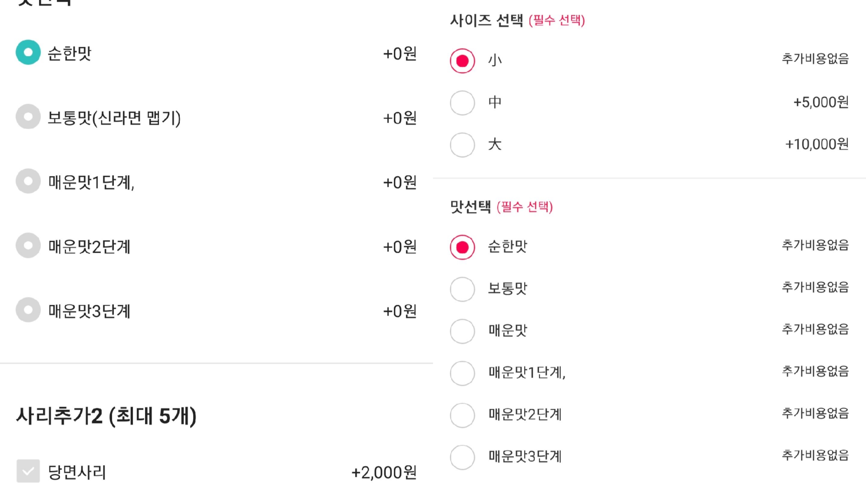 배민 매운맛1은 매웠고, 요기요 매운맛0은 덜매웠는데 참고해주시구요~