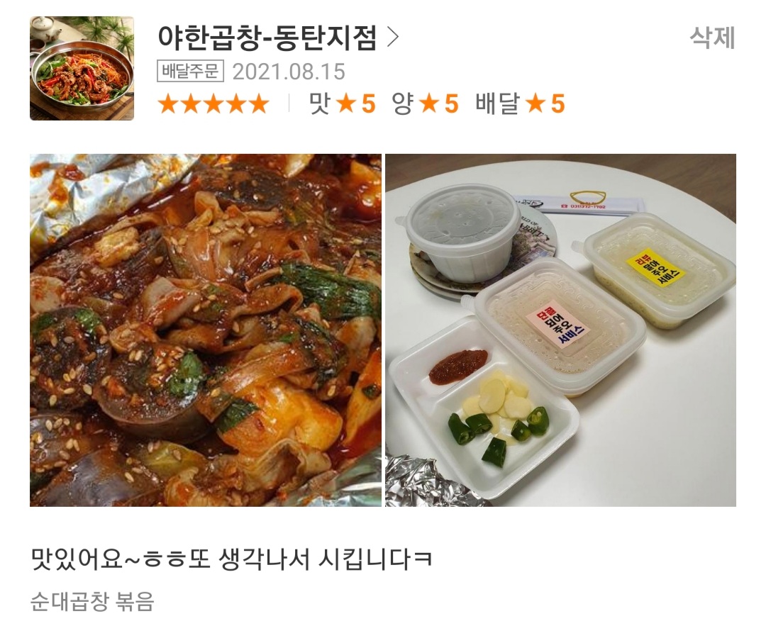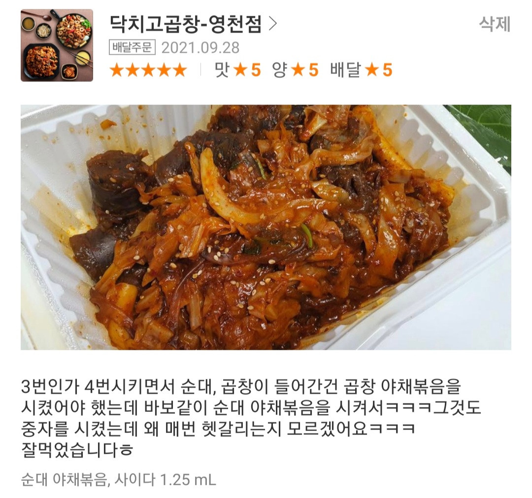네ㅋㅋㅋㅋ 그랬다고 합니다ㅋㅋㅋㅋ 순대볶음엔 곱창이 없고 곱창야채볶음엔 순대가 있어요.ㅋㅋㅋ(이거 제리뷰예요)