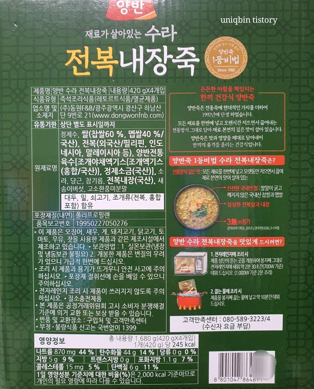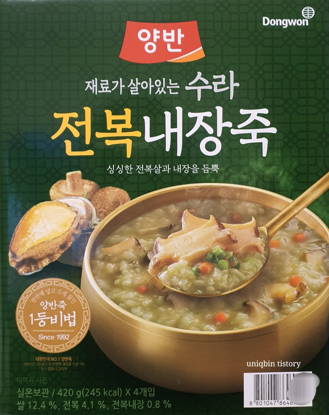 양반 내장전복죽 성분이나 영양정보 등등 봐주시구요.