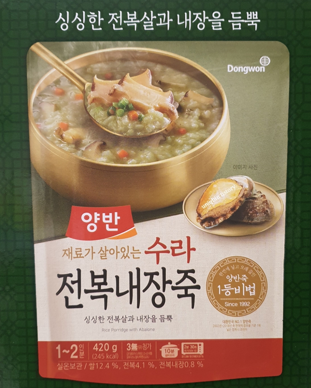 근데 제가 이 내장전복죽 개당 가격은 몰라서, 동일한 가격이라면 내장전복죽을 추천하고싶고, 전복죽이 더 싸다면 그냥 전복죽이 한끼 떼우긴 낫다싶어요.