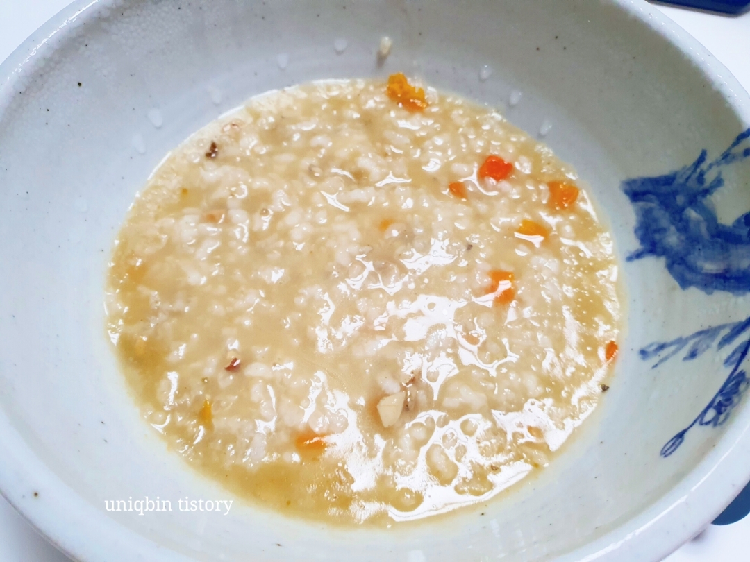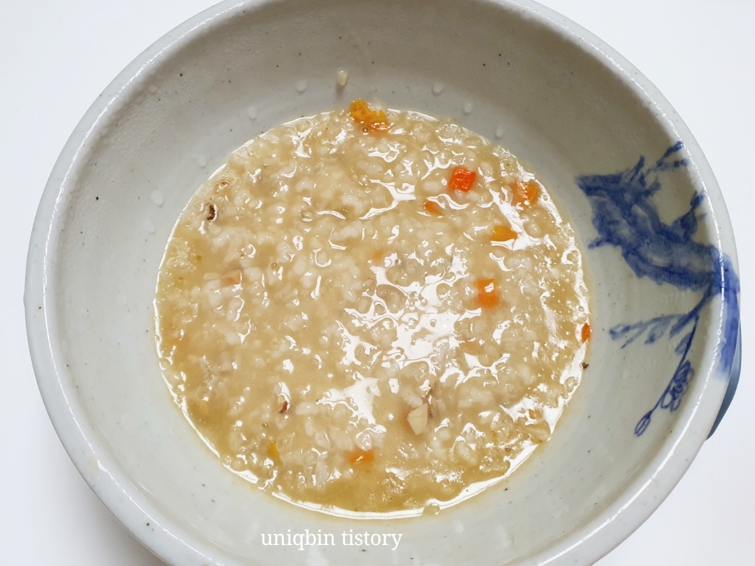 어? 뭔가 확실히 다르긴 다르다는게 묘하게 와닿았고 다른날 또 먹으니 오 확실히 내장 없는 전복죽이랑은 다른맛이 확느껴졌어요. 물론 집에서 직접 끓이는 그런 내장전복죽 맛이랑은 다른데 (조미료 짠맛이 느껴지는 그런 기분?)