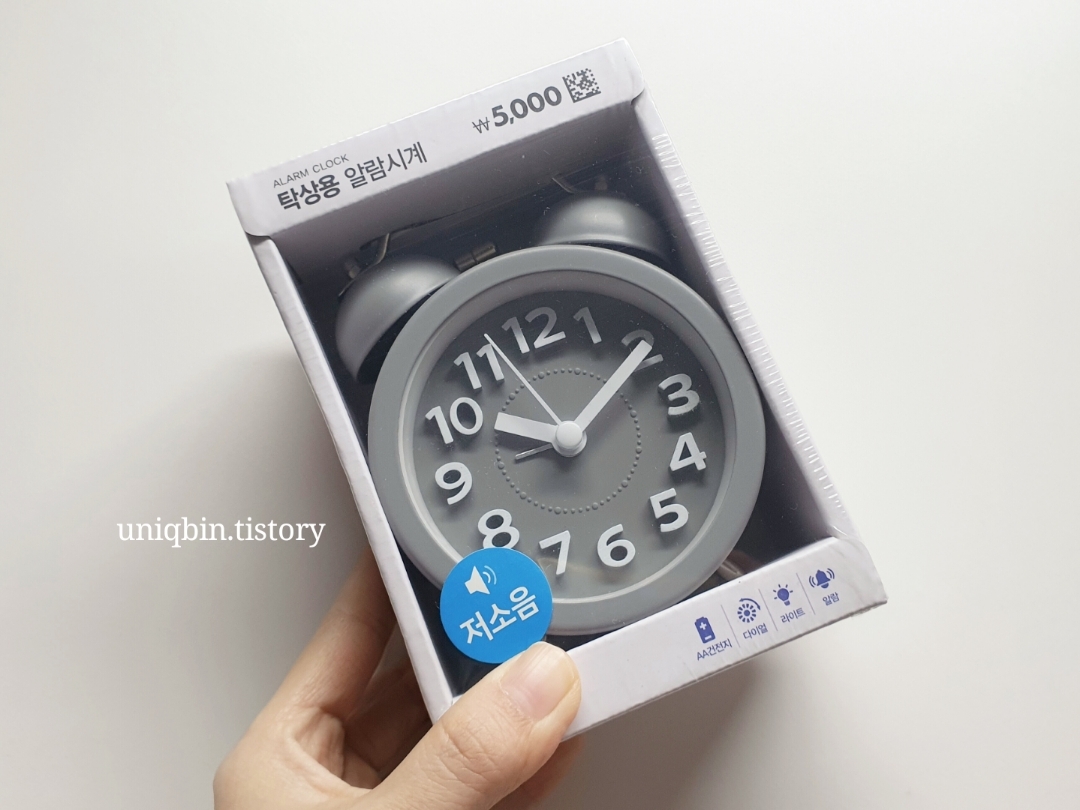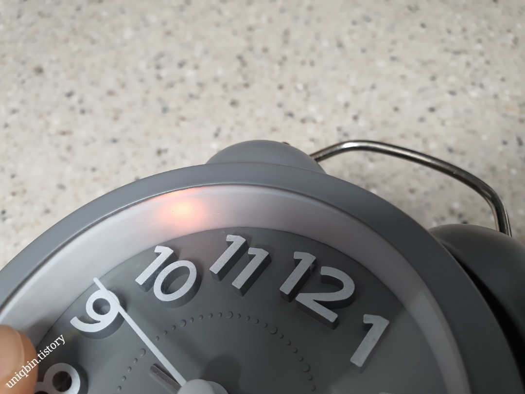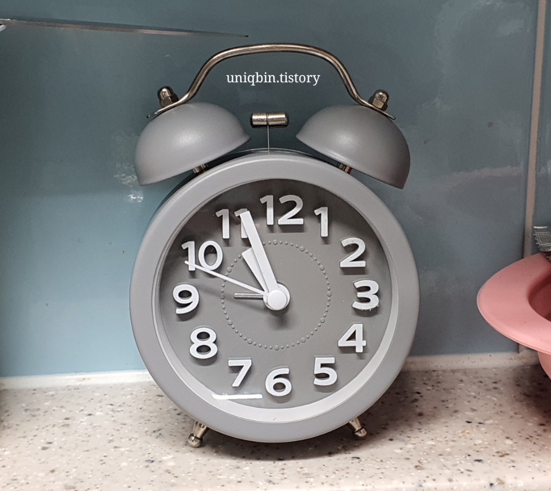 어느날 핸드폰 배터리 충전 콘센트 전원을 꺼버린 사건으로, 폰배터리가 방전 돼서 알람이 울리지않아 지각한 뒤 부랴부랴 구매한 다이소 탁상시계.