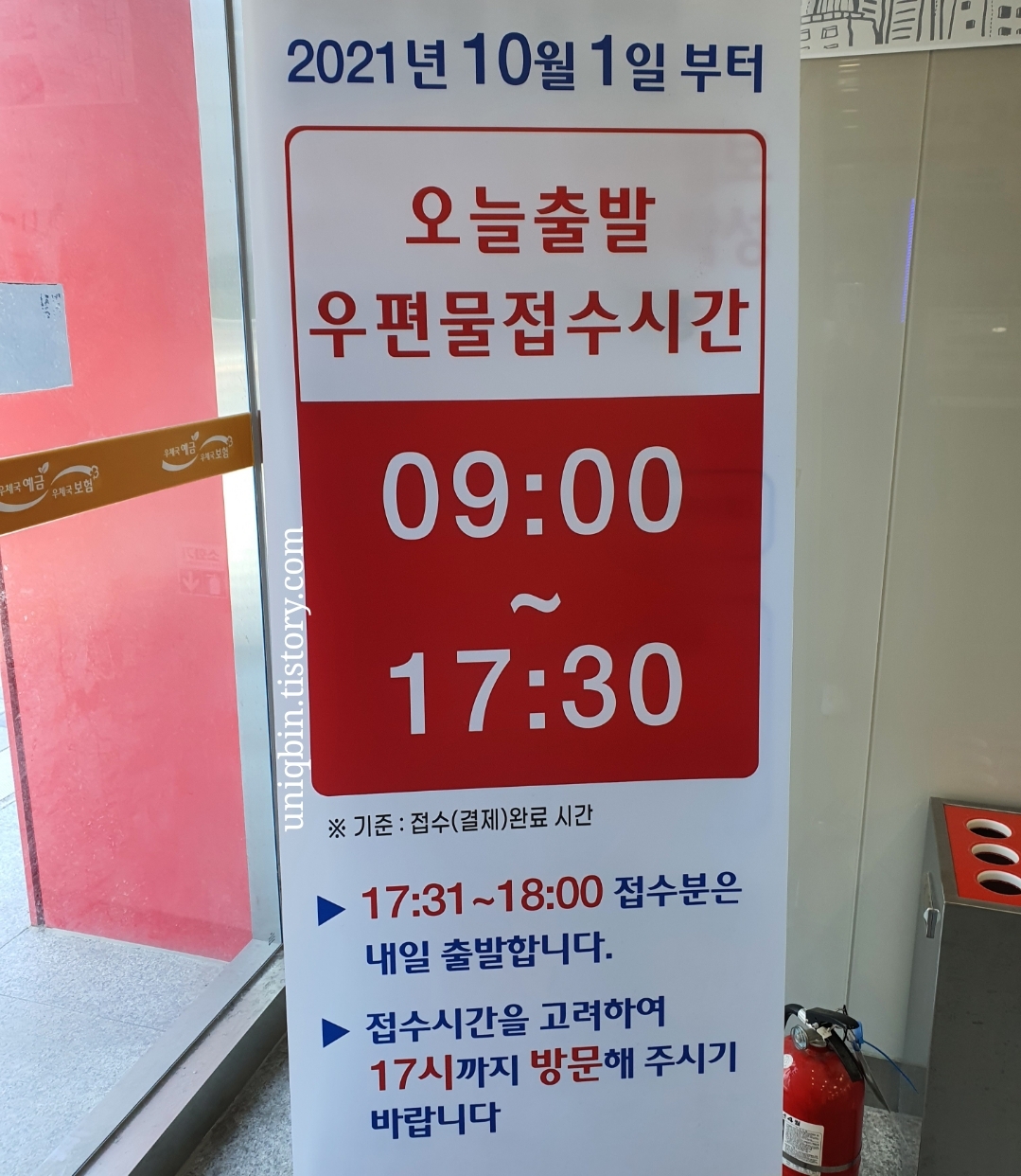 우체국 영업시간은 6시 까지라지만 오늘 보내야 하는 물건이라면 서두르는게 좋겠죠.