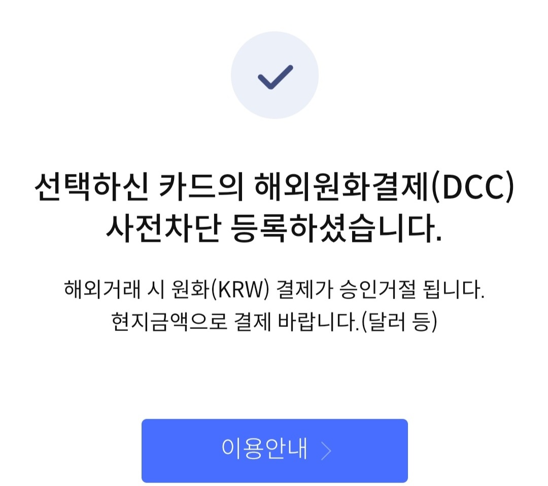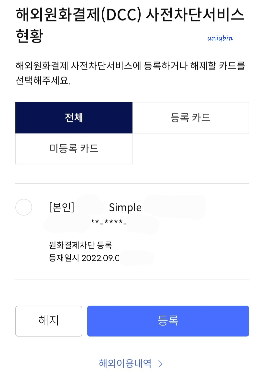 카드 번호 밑에 원화결제차단 등록 되었다고 뜨네요.