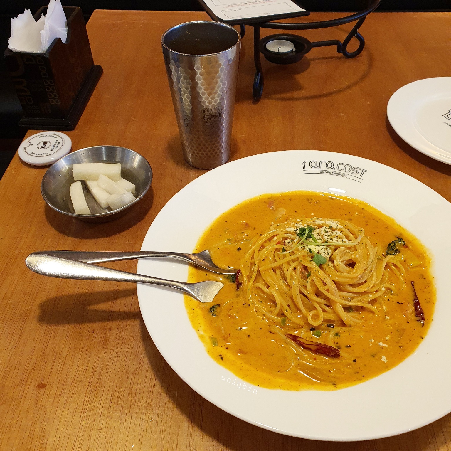 그래서 저도 나름 가까운 파스타집인 라라코스트에서, 이때 까지 먹고싶었던 크림파스타를 시켜야지~ 생각하며 들렀는데 막상 또 이날은 식욕은 충만하지만 미각에 있어 입맛이 갔는 날인데,